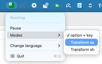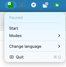 After installation, you’ll need to start the app, and that will give you a small icon in the system bar on top of the screen. Clicking on it will open a menu, and you can push Start to engage the Esperanto keyboard functionality. The Start menu item will then be replaced with Pause, and you can use that when you want to get the normal keyboard functionality back.
